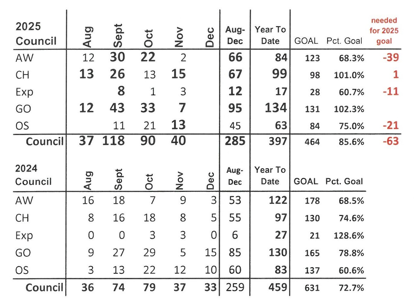 Led by growth overall each month August through November this Fall recruiting season, council can do something it has not done since before the 2015, by recruiting more Scouts each month than the previous year.